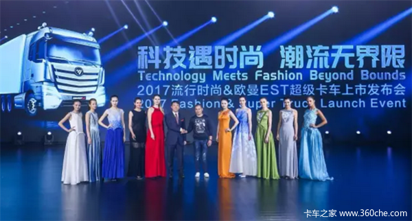 但是,无论是开场炫酷的无人机和表演,还是惹人喜爱的娱乐机器人NK-01,它们终将只是主角身边的“绿叶”。随着音乐缓缓响起,欧曼EST-A超级卡车缓缓驶入T台,科技与时尚的对撞不期而至
