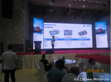商丘市中吉一汽汽车贸易有限公司牵引品系经理 贾雪震对新J6P AMT自动挡牵引车的核心卖点进行了深刻地讲解。