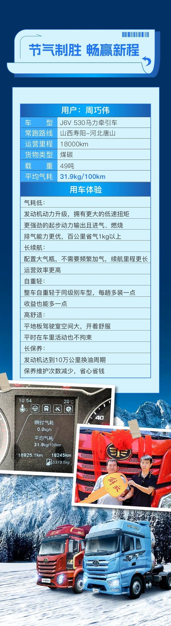 当前位置: 卡车之家 >卡车经销商 > 商丘市中吉一汽汽车 > 促销新闻 > 节气达人丨百公里气耗31.9kg!J6V燃气牵引高效节能,让周师