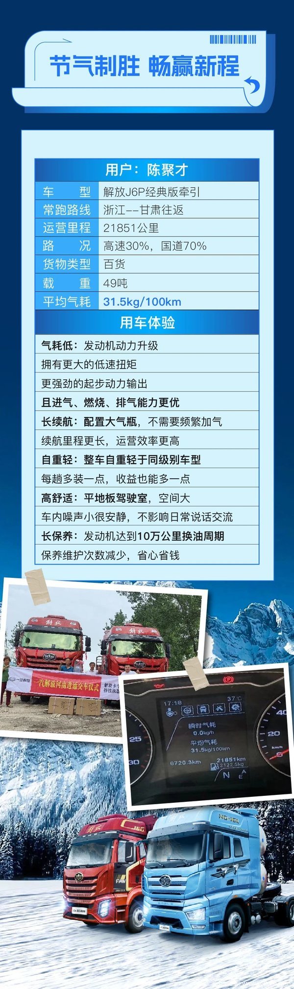 当前位置: 卡车之家 >卡车经销商 > 商丘市中吉一汽汽车 > 促销新闻 > 节气达人 | 百公里气耗31.5kg!J6P节气表现优异,陈师傅