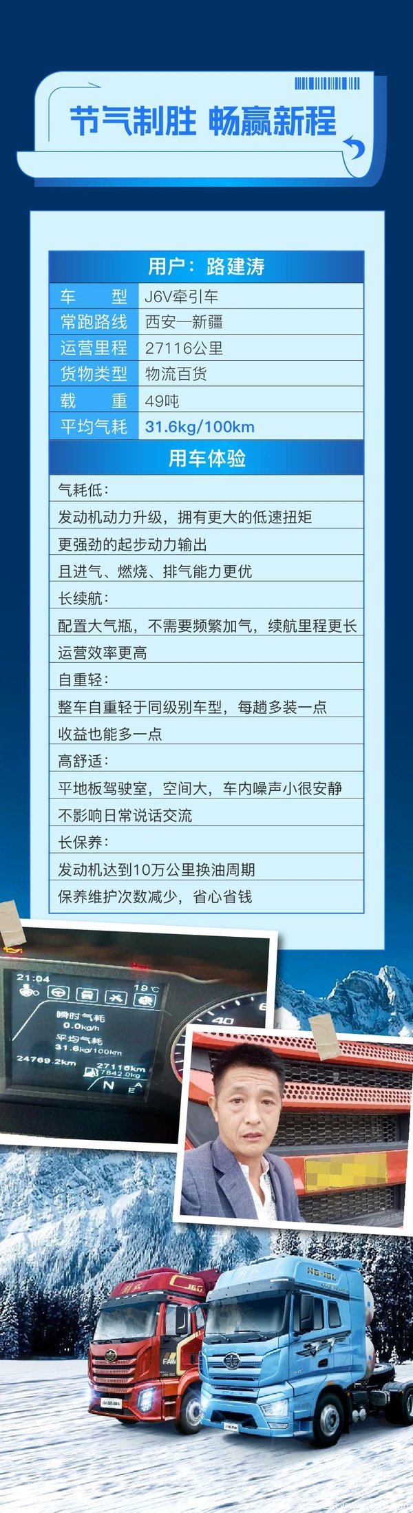 当前位置: 卡车之家 >卡车经销商 > 商丘市中吉一汽汽车 > 促销新闻 > 节气达人 | 百公里气耗31.6kg!路师傅对J6V牵引车各方面