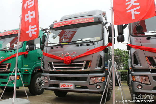 5月27日,全新升级的江淮骏铃V9中卡在江苏无锡首发上市,新车针对干线物流的使用环境而开发,动力方面搭配了迈斯福和德威两款发动机,最大特色则是拥有2235mm宽的驾驶室与48.36m?容积的货箱 超宽驾驶室 转为快递而研发
