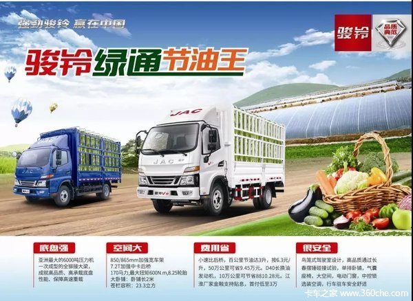 此次上市的骏铃绿通节油王,是专为果蔬等运输而定制,具有动力强、承载强、装载多、效率高、可靠性高、舒适性好、安全性高以及性价比高的产品特性,在人们对瓜果蔬菜的需求量和质量大幅提升的当下助力民生,让卡哥收益更多。