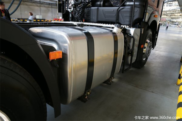 前后轮使用的是铝合金车轮,可以降低车辆的重量。并且使用的是康迈的免维护轮端,最长可以实现50万公里保养,大大提升用户的运行效率,降低运营成本。同时配备双500L油箱,保证足够的续航里程,如果按百公里32升油耗,这辆车至少可以提供2500公里的续航。