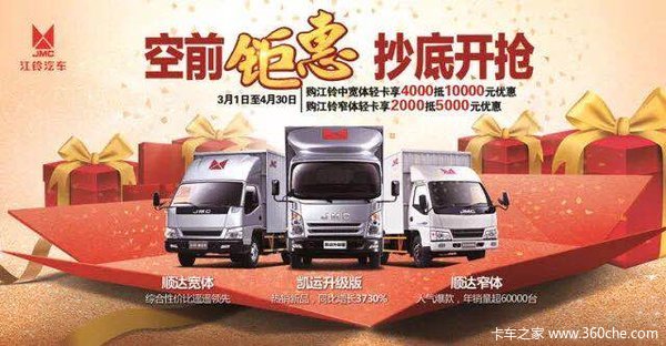 车型盛惠,盛惠换新车,这个春天,好礼多多,优惠多多,赶紧来石家庄汉岳4S店抢购您的心仪大礼! 选车就选江铃集团,购车就去石家庄汉岳。