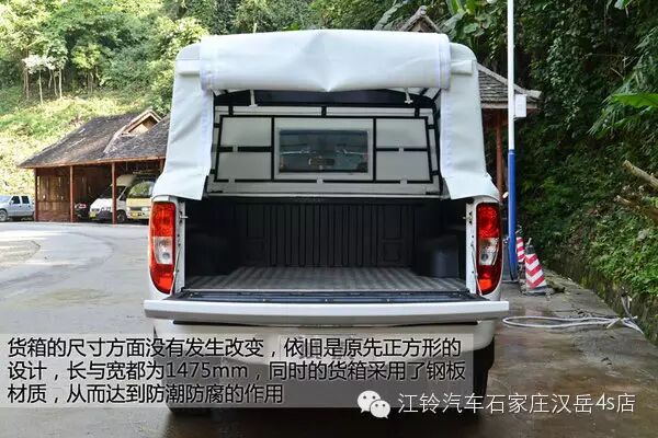 由于特装车与民用车相比整车尺寸并未作出调整,所以在货箱的尺寸方面也没有发生改变,依旧是原先正方形的设计,长与宽都为1475mm,同时在货箱地板与两侧,江铃域虎都使用了特殊材料进行喷涂,从而达到防潮防腐的作用。