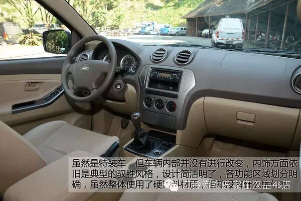 虽然是特装车,但在车辆内部却没有进行改变,内饰方面依旧是典型的驭胜风格,整体设计简洁明了,各功能区域划分明确,虽然整体使用了硬塑料材质,但却没有什么廉价感,可见在细节方面江铃汽车还是十分用心的。