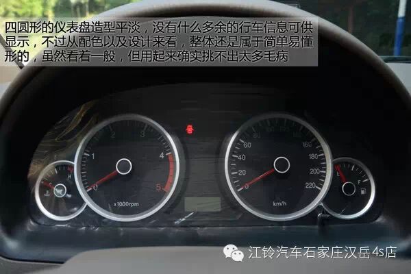 四圆形的仪表盘造型平淡,并且在上方除了常规功能外,并没有什么多余的行车信息可供显示,不过从配色以及设计来看,整体还是属于简单易懂形的,虽然看着一般,但用起来确实挑不出太多毛病。