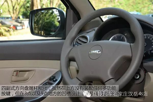 四副式方向盘握杆粗壮,可以为驾驶员提供不错的手感,虽然在上方没有装配任何多功能按键,但在3点以及9点地方的凹槽设计,还是值得表扬的,毕竟这是一台自主品牌的皮卡车型。