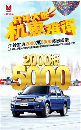 当前位置: 卡车之家 >卡车经销商 > 河北福江汽车 > 促销新闻 > 江铃宝典2000抵5000 省钱来袭