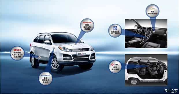 全球著名品牌,美国霍尼韦尔增压器、德国采埃孚变速箱、德国博世安全系统、美国博格华纳分动器...联合打造,驭胜S350集优质于一身!