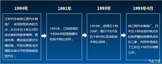 早在1984年,江铃汽车就开始和日本五十铃公司合作。在1993年,就获得了五十铃4JB1发动机技术转让合同,之后,江铃轻卡全面引进五十铃发动机生产线。