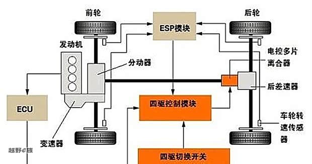 所谓适时四驱就是根据车辆的行驶路况,系统会根据行驶情况自动切换为两驱或四驱模式,这过程不需要人为操作。这种四驱系统相对于分时四驱系统来说,免去了繁琐的手动操作,你完全不用担心因为切换不当而导致四驱系统损坏,都交给“电脑”操心,甚至很多时候四驱系统切入你也毫无察觉。