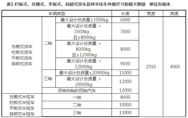 目前半挂挂车在国内强制性标准主要参照:GB1589-2016《道路车辆外轮廓尺寸和GB7258-2017《机动车运行安全技术条件》、轴荷及质量限值》。GB1589-2016中对仓栅车定义为:载货部位的结构为仓笼式或栅栏式且与驾驶室各自独立的载货汽车/半挂车,载货部位的顶部安装有与侧面栅栏固定的、不可拆卸的顶棚杆。外廓尺寸中三轴仓栅式半挂的最大限制为13000x2550x4000mm。