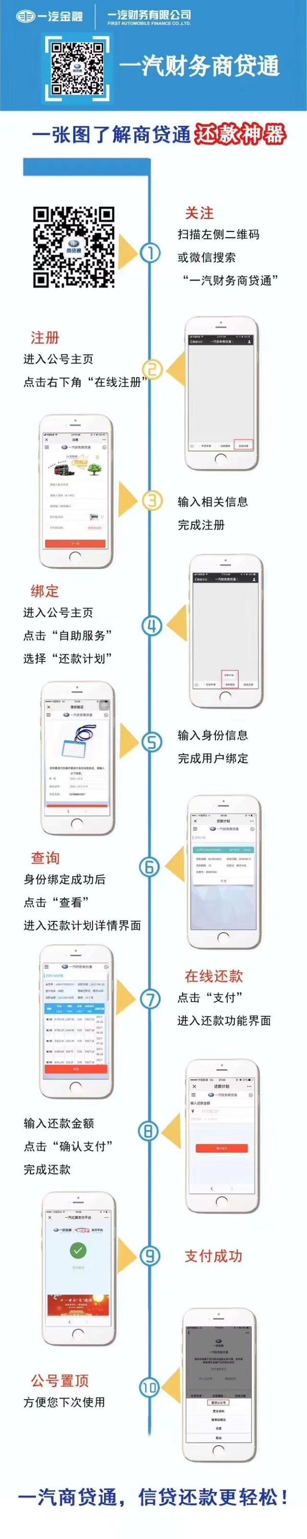 贷款的客户看过来!!!一汽财务微信还款功能已开通,可手机查看还款计划,可用零钱,可分卡,分次还款,无需还款手续费,方便快捷,有不会操作的可电话或微信我公司!