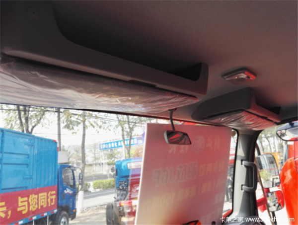 J6F国五外观与国四相比没有太大变化,采用的是解放宽体单排驾驶室,单排带卧铺设计在轻卡里比较少见,驾驶员在空余时间可以很好补充睡眠。该车还配备有导流罩。