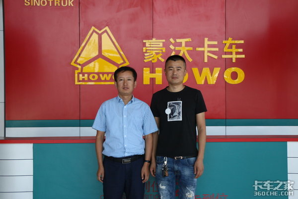 中国重汽集团销售部鲁南分公司经理苗凤雷(左)与临沂通赢大客户代表(右)