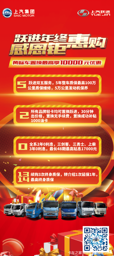 当前位置: 卡车之家 >卡车经销商 > 保定新润汽车销售 > 促销新闻 > “上汽跃进年终感恩钜惠购”购买轻卡送大礼!!!
