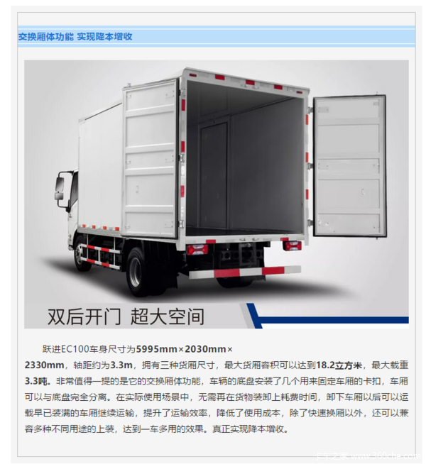 当前位置: 卡车之家 >卡车经销商 > 保定新润汽车销售 > 促销新闻 > 节能物流电动轻卡 - 跃进EC100再创佳绩