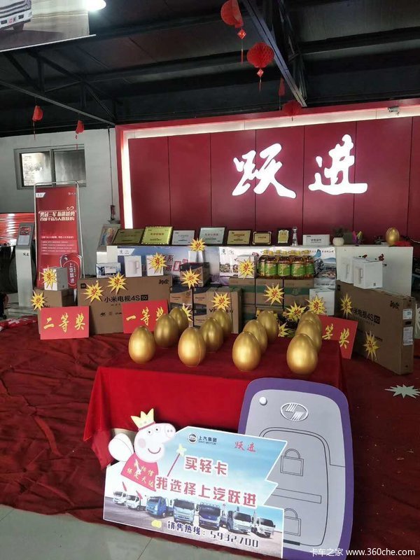 值此之际,为了回馈一直以来对跃进支持的新老用户,跃进开展了以“百城千店万人喜跃购”为主题的活动。凡是购买上汽跃进车型均可参与5月23日跃进“百城千店万人喜跃购”,就有机会砸金蛋抽赢得50寸高清彩电!