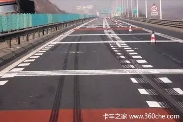 有的地方还用彩色标线,认为更能起到警示作用,与减速标线作用一样,一般彩色线都被划在坡道或者匝道口的位置上。