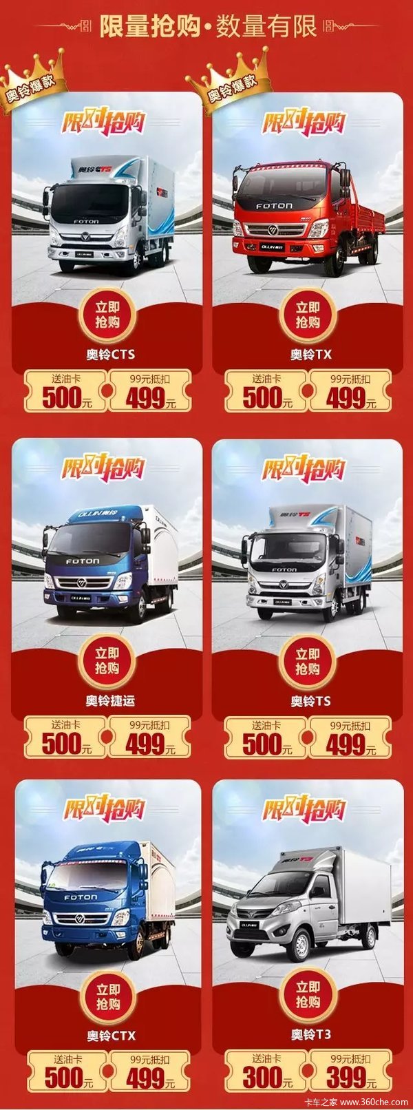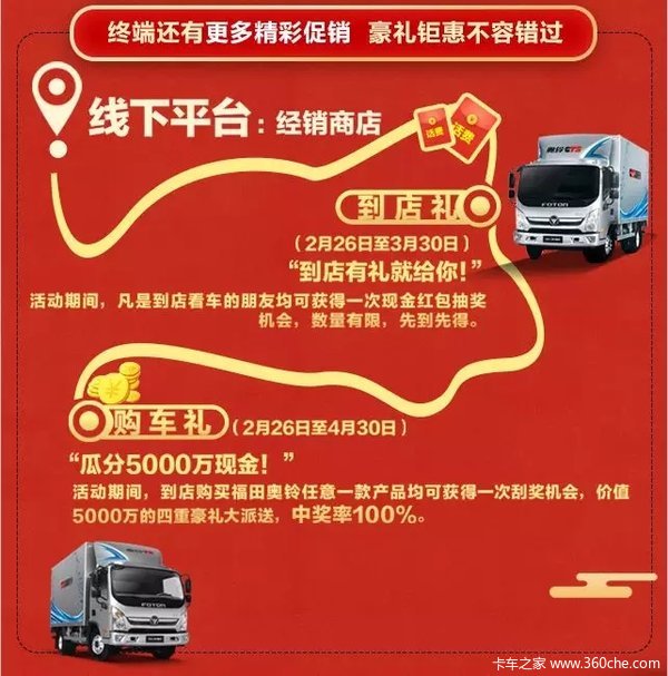 当前位置: 卡车之家 >卡车经销商 > 杭州大容汽车销售服务 > 促销新闻 > 5000万豪礼大放送|买奥铃,趁现在
