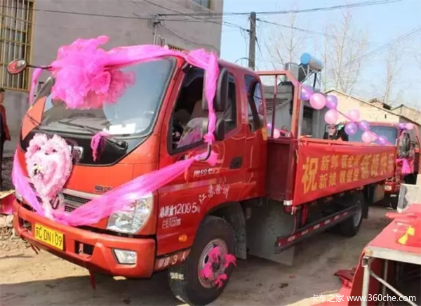 红色的福田奥铃轻卡与结婚的喜事相呼应,让结婚喜上加喜。虽然是轻卡,全程也有150公里的路程,但是新娘却没有一丝的疲惫感,妆容依然娇好,新郎也是那样的神采奕奕精气神十足。福田奥铃CTX轻卡动力十足,将新娘准时地迎接到新郎家。