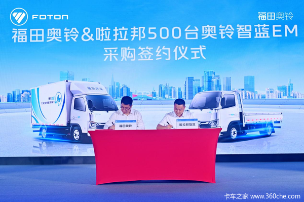 奥铃还与重庆啦拉邦物流签署了500台新车采购协议,并向啦拉邦物流批量交付了100台奥铃智蓝EM。