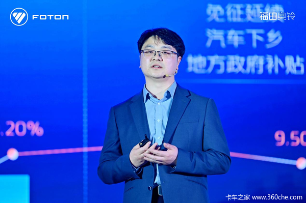随后,奥铃市场与商品规划副总裁陈岩对奥铃智蓝EM进行了详细解读。陈岩表示,“聚焦市场需求,奥铃智蓝EM定位‘全路况 全场景 全价值’,致力于为用户带来TCO更佳的全新城配物流解决方案,将为城市发展进一步注入绿色动力。”