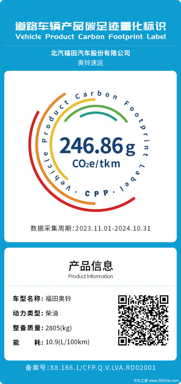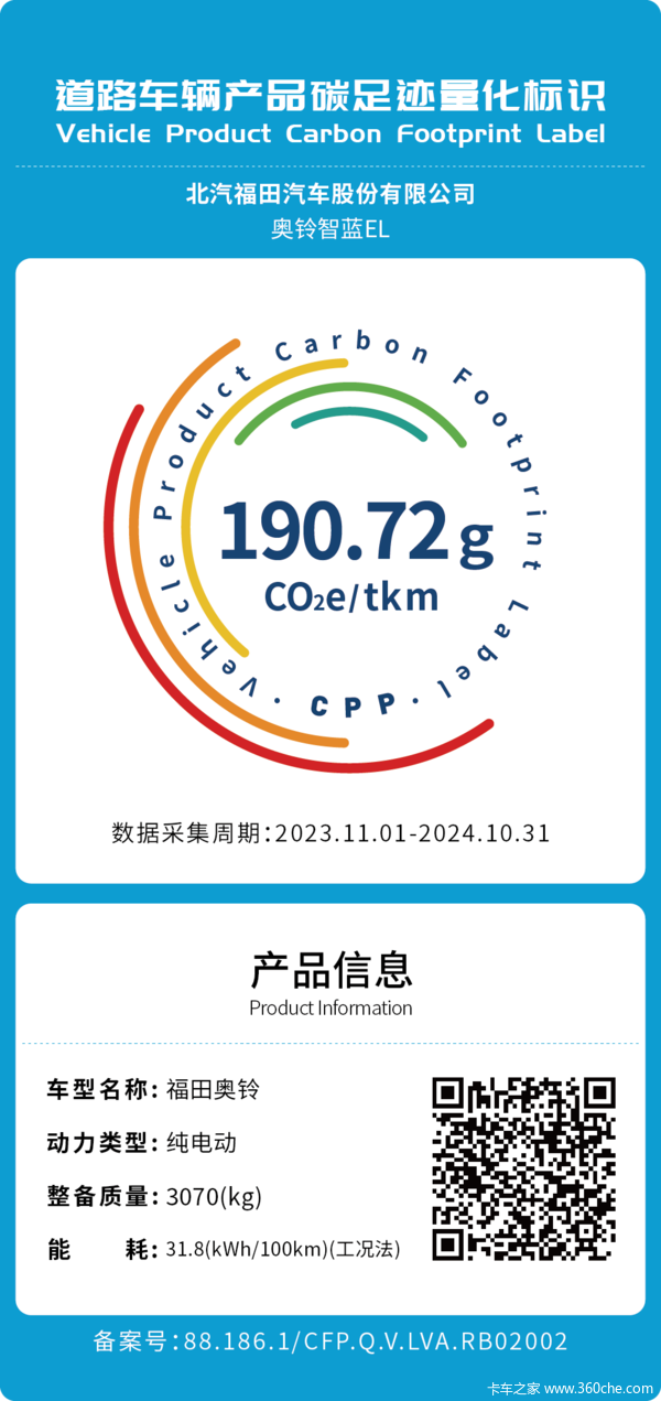 一款传统燃油轻卡奥铃速运,一款新能源纯电轻卡奥铃智蓝EL,同时获得首批碳足迹量化标识,也意味着福田奥铃在车辆研发与生产过程中过硬的绿色低碳技术实力,传统能源和新能源都在各自的技术路线上实现了对碳排放的有效控制,树立了行业绿色发展的标杆。