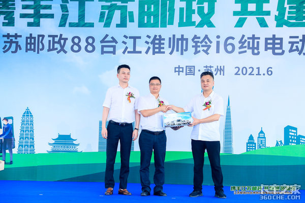 021年6月25日,主题为“携手江苏邮政 共建绿色物流”的江苏邮政88台江淮帅铃i6纯电动物流车交付仪式,在浙江苏州隆重举行。在社会各界的见证下,江淮汽车携手江苏邮政、江苏中腾新能源开启卫蓝行动,共建绿色物流,首批88台江淮帅铃i6纯电动物流车盛大交付。