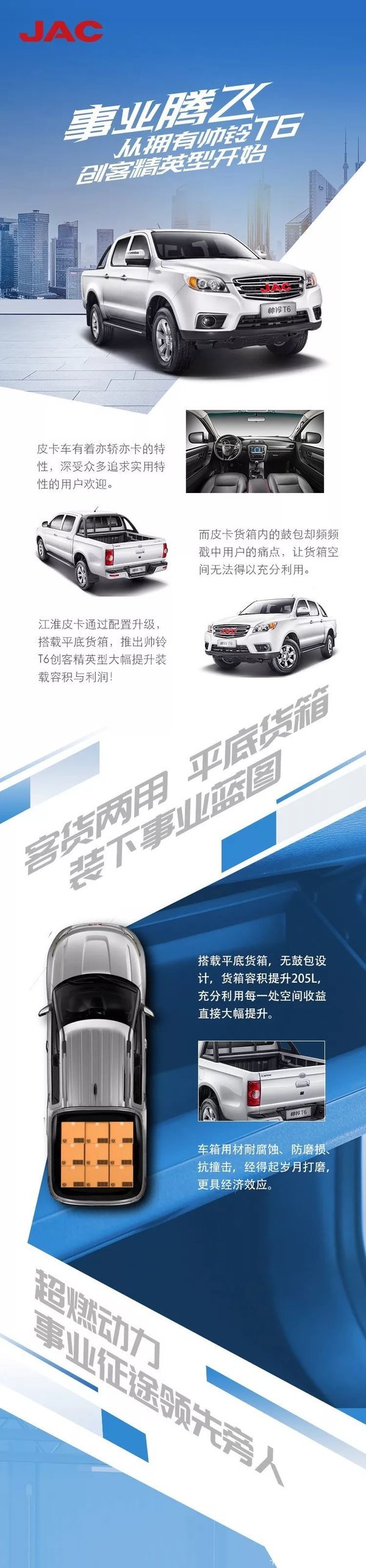 当前位置: 卡车之家 >卡车经销商 > 惠州市汇力汽车 > 促销新闻 > 事业腾飞,从拥有帅铃T6创客精英型开始!
