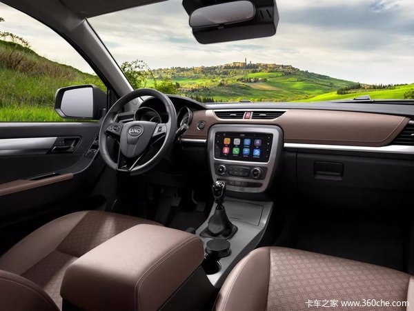 作为国产高端皮卡,帅铃T8的驾驶室环境更贴近乘用车品质。仪表台、座椅面料大量采用典雅黑,零部件采用亮银色,两色中和,品位不凡。宽敞的驾驶室空间最多可容纳6-8人,凸显了江淮皮卡的宜家特性。驾驶室内部配置高档实用,CarLife 手机互联系统、8吋高清数字液晶屏、360°全景影像系统和倒车雷达、胎压监测系统,都体现了其高端皮卡的定位,让用户驾驶皮卡也有乘用车般的高级体验感。