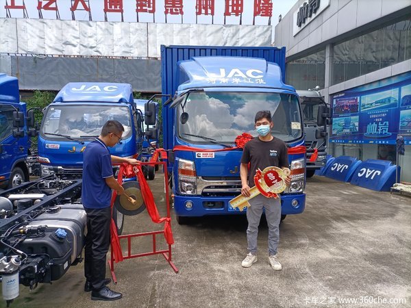 随着生意越来越好,一台帅铃已经不够用了,今年8月我又定了一台帅铃,15个工作日就把车提走了,不得不说这个办事的效率真的高!销售人员也特别热情,售后服务也贴心,经常可以收到回访,不仅关心我的用车情况,再热的天也会来上门检查!加入帅铃这个大家庭,很高兴!
