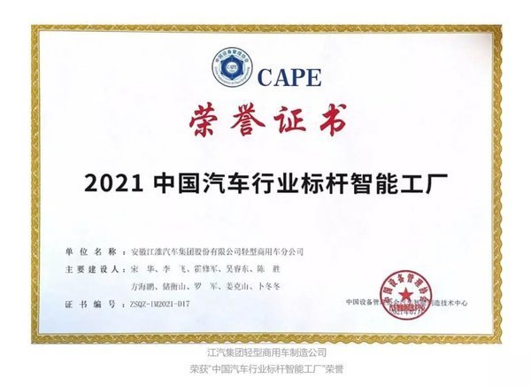 “2021年中国汽车行业标杆智能工厂”榜单