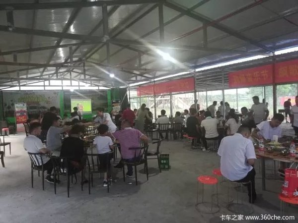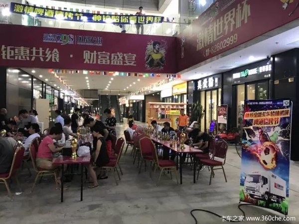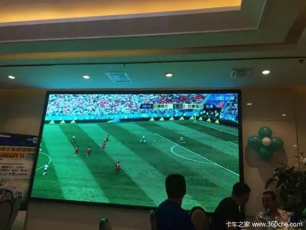 在具有浓郁世界杯氛围的帅铃4S店内,来宾正享受着美食和足球带来的快乐