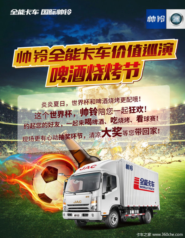 国内的朋友能去俄罗斯现场看球的毕竟是少数,大多数人还是在家里守着电视,不过这个夏天帅铃给你来点不一样的,从6月14日世界杯开幕之日起,为了回馈广大新老客户的支持也为了给广大球迷朋友提供一个一起看球狂欢的环境,以“激情啤酒烧烤节,帅铃陪你看世界杯”为主题的巡演活动在全国范围内多地展开,下面请跟随镜头,看一看在全国各地帅铃是如何陪大家一起狂欢的。