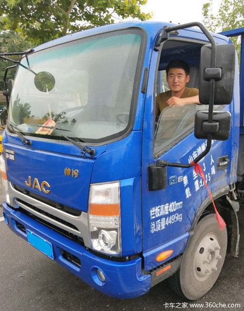 “其实早就有买车的想法,也一直在比较中,看了很多车,一直没下决定。刚好身边有朋友推荐我买帅铃,说帅铃整体品质很好,平时小毛病特别少,特别省心,这可说到我心坎里了。在物流公司这两年接触了不少卡车,但都是小毛病不断,开起来费心费力费钱,所以我一直告诉自己买车一定要选品质好、小毛病少的。后来跟多人打听后,了解到帅铃品质很可靠,我就去我们当地经销商那里准备选车了,经销商告诉我五月份帅铃全能物流版要上市,我了解一下这款车的各方面配置,完全就是我想要的车,所以就一直等它正式上市,等到五月二十多号,我把帅铃全能物流版提回了家,和它一起开始我自己的运输事业。”