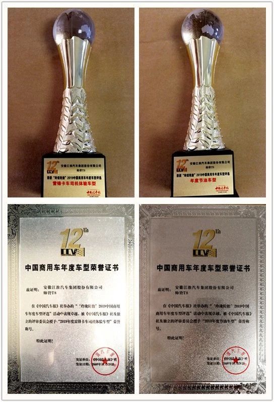 11月28日,第十二届该奖颁奖仪式在京举行,江淮帅铃T8斩获两项大奖,“节油单项奖”和“雷锋司机体验奖”。