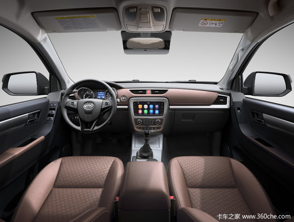 在功能上,帅铃T8更加注重驾乘体验感,江淮皮卡专属的J-ConNet2.0车联网智能系统,其智能车管家与远程控制功能带给驾驶者们前所未有的智能管控体验;CarLife 手机互联系统让驾驶者可以通过它进行音乐播放、路线导航、查询天气,增加出行的智能性和愉悦感;360全景影像系统、LDW车道偏航警示系统、博世9.1版ESP系统等智能配置也一应俱全,彻底的SUV化配置和接轨时代的互联网配置让帅铃T8走在高端皮卡前沿。