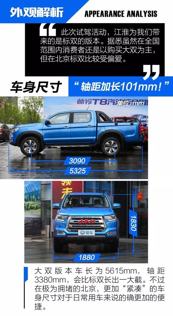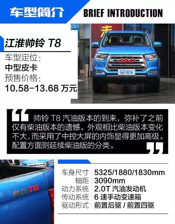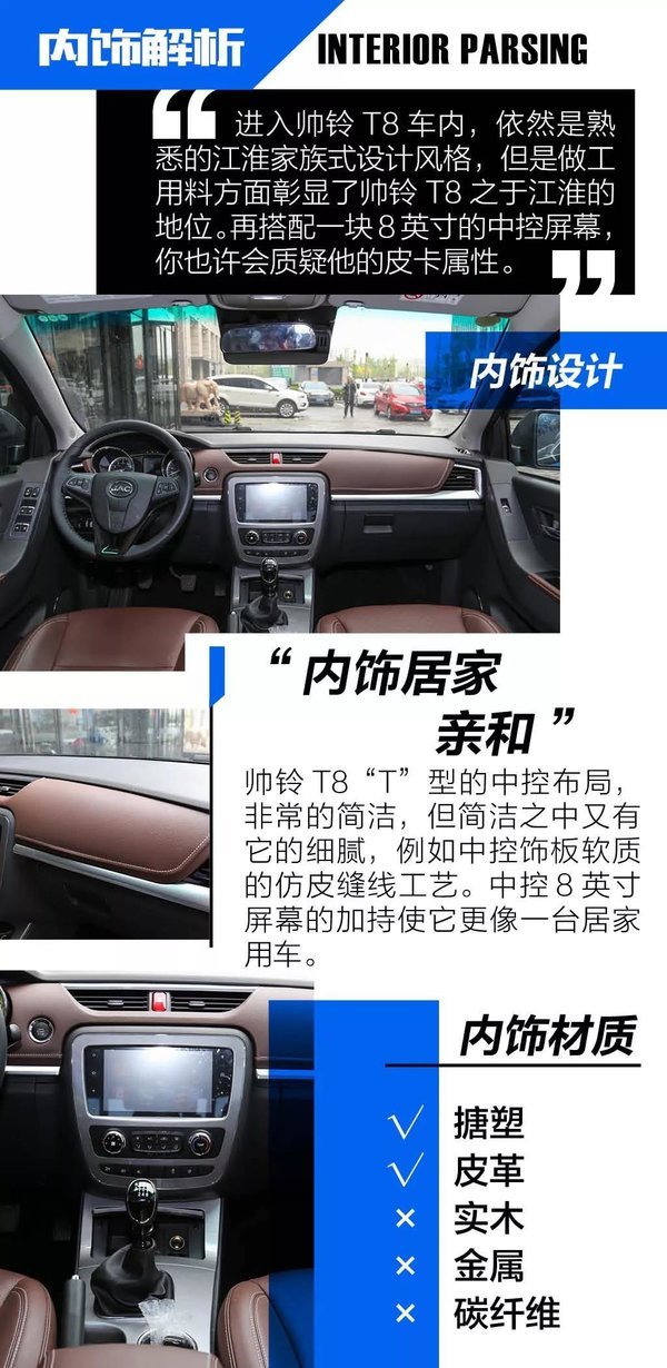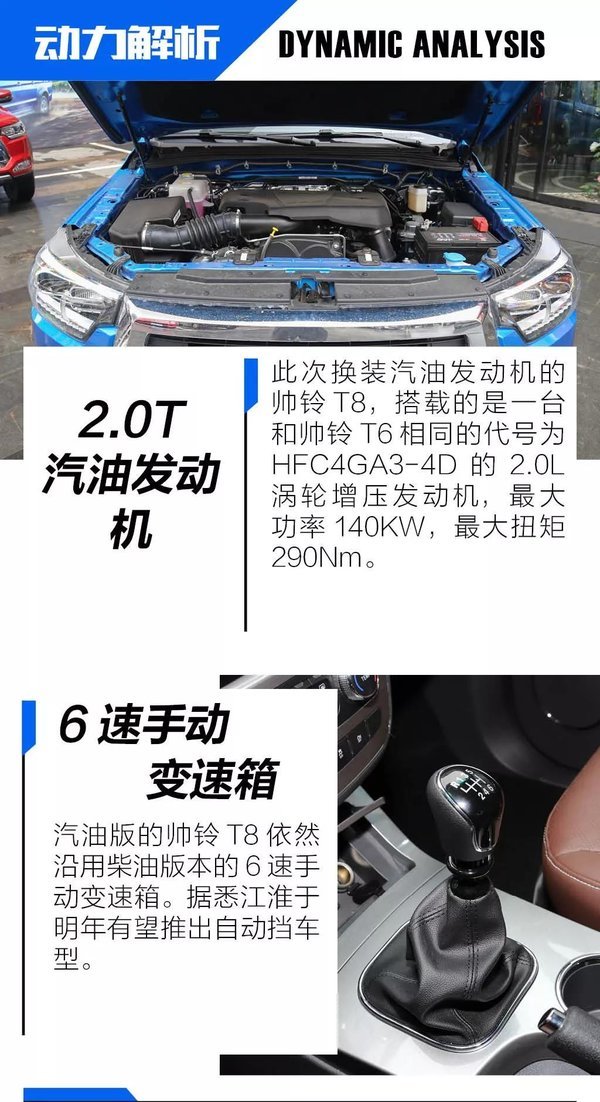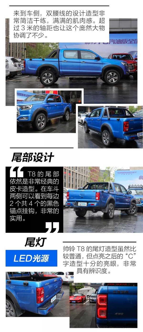 来到这次试驾活动的场地内,帅铃T8的表现也是非常的不错,挑不出什么的毛病。首先这台车开起来给人一种比较轻松的感觉,油门、刹车、离合三个踏板脚感较轻,且离合行程适中,频繁踩踏也不会感觉吃力。随着油离配合起步,车辆比较轻盈的行驶起来,而在越野场地中面对不断的爬坡也能充分体验到这台汽油发动机充足的低扭储备。即便290Nm的最大扭矩相比柴油发动机有一点差距,不过也完全足够了。另外,在整场体验过程中,这台2.0T的发动机,动力输出比较的线性,几乎感觉不到涡轮的存在。这点不论对于越野还是日常行驶都是非常不错的。