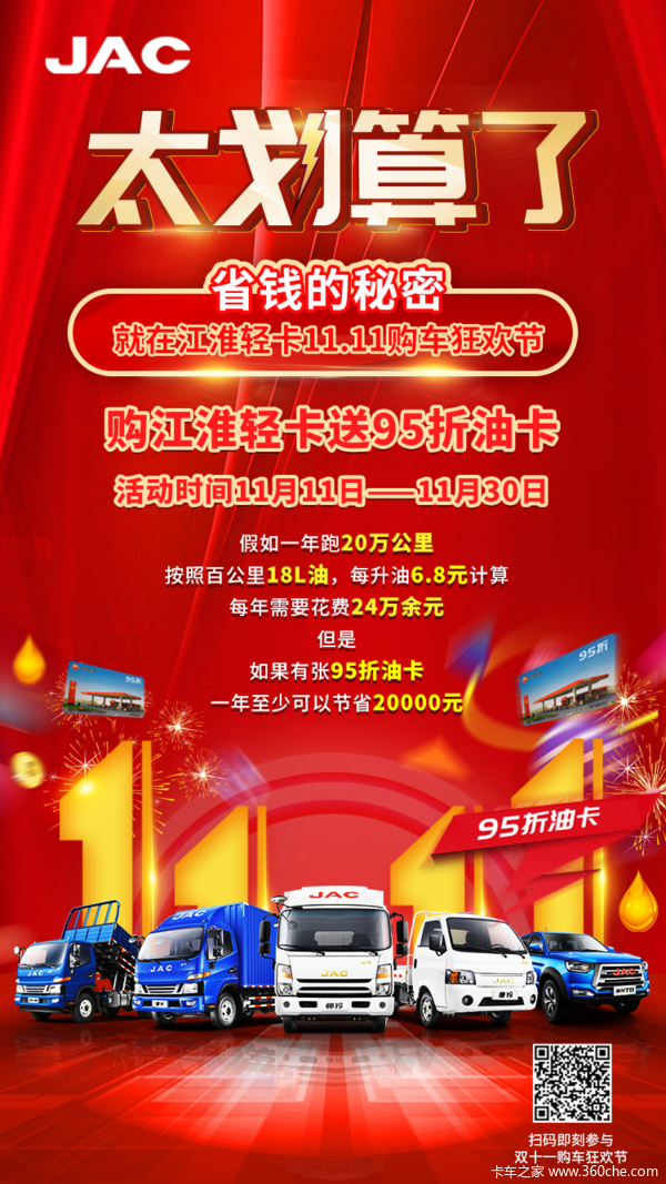 当前位置: 卡车之家 >卡车经销商 > 温州帅腾汽车销售(江淮帅铃) > 促销新闻 > “江淮轻卡双十一” 购江淮轻卡送95折油卡!