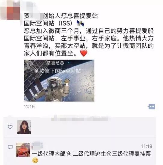 世界各国的人们都在空间站内达成了共识:做微商,能上天