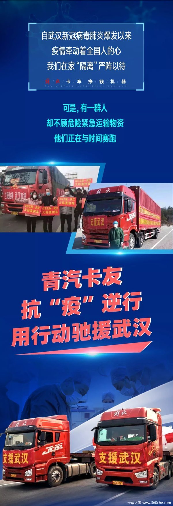 当前位置: 卡车之家 >卡车经销商 > 济南银月汽车销售 > 促销新闻 > 与时间赛跑丨青汽卡友昼夜奔赴“疫区”,用行动驰援武汉!