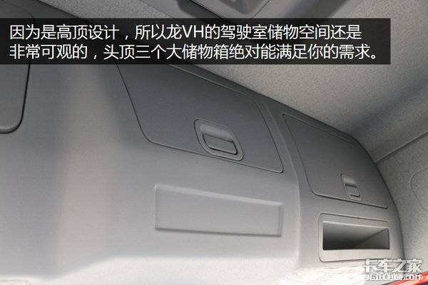 ● 外观点评:龙VH与普通龙V中卡仅有一个高顶的区别,在中卡上采用高顶驾驶室确实是一大亮点。除了宽敞的驾驶室空间外,双卧铺设计也是更加考虑到夫妻车、父子车的切实需求。