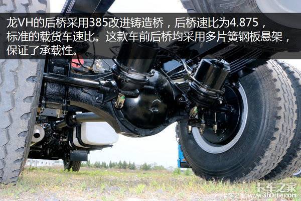● 底盘点评:龙VH的底盘配置可以说是搭配合理,180马力的大柴发动机搭配高低挡8挡法士特变速箱,后桥则是采用多片簧悬架的385改进铸造桥,三大总成的有机组合让这款车更加适合标载快运。