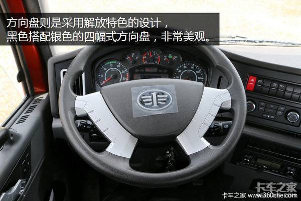 ● 内饰点评:宽大的高顶双卧驾驶室绝对是这款车的亮点,一汽解放青汽也考虑到目前物流从业人员的切身感受,夫妻车、父子车越来越多,双卧铺的设计能够让这类用户休息的更加好。