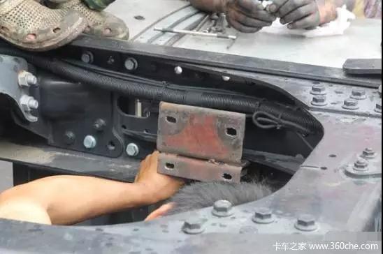 这台车的大梁上本来就有很多预留孔,支架的安装也就方便了许多。支架的制作相对来说比较简单,只是开孔以及安装支架时,角度方面需要细微调整。在安装过程中,维修师傅对支架的棱角进行了细致的打磨,避免棱角对其他管路造成磨损。
