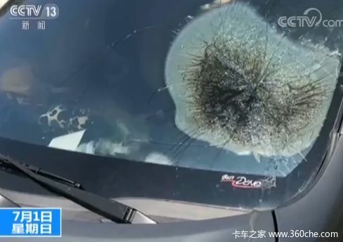 这辆受损车辆的驾驶座前方被烧成一圈黑,挡风玻璃碎成蜘蛛网状,车子内部更惊悚,胶条都已经溶解。