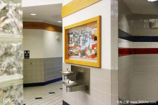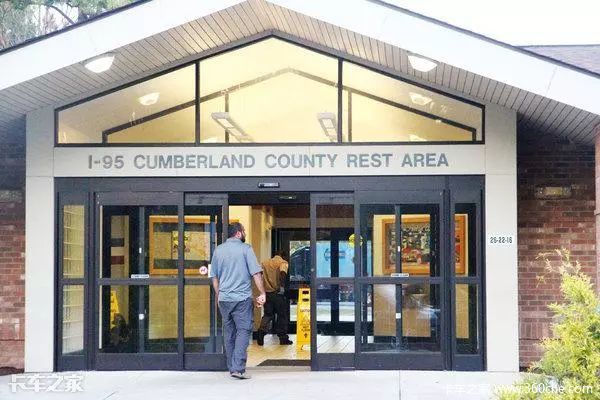 停车休息区里的厕所,和国内的服务区设计不一样,美国服务区的这个厕所建在停车场的中间,两侧的司机都可以进入。